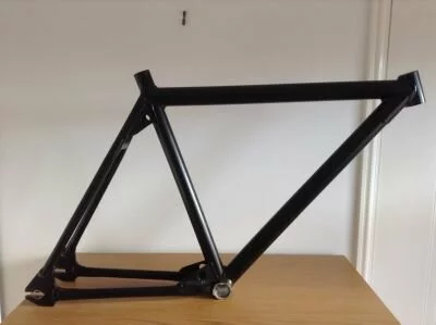 has never been raced and only did about six laps before being stripped back to bare frame. The bottom bracket shell has been faced to accept external (or internal) bottom bracket. The head tube is 1 1/8" and the rear end will accept a wide rear tyre.