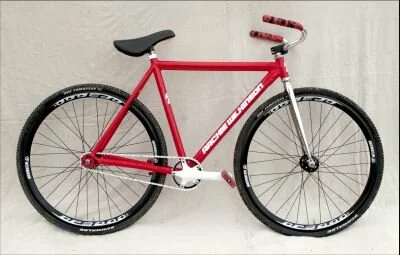 Its a full size alloy Archie Wilkinson bike with new handlebars, Shimano external bearings bottom bracket, white Shimano Sora cranks fitted with 34 tooth chain ring, red pedals, black Weinmann DP3000 wheels fitted with 18 tooth freewheel and Schwalbe Speedway Pro tyres.